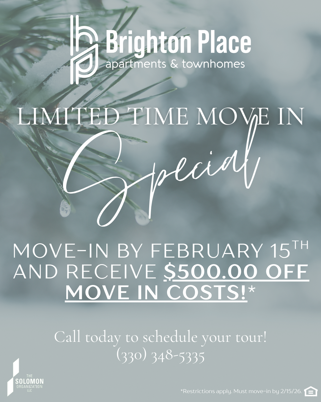 Welcome home to Brighton Place Apartments! Our charming community is nestled in the Central area of beautiful Stow, Ohio. We are just minutes from shopping, fine dining, and exciting entertainment venues. With a great location guaranteed to make your life comfortable and convenient, there is no excuse not to call Brighton Place Apartments home.