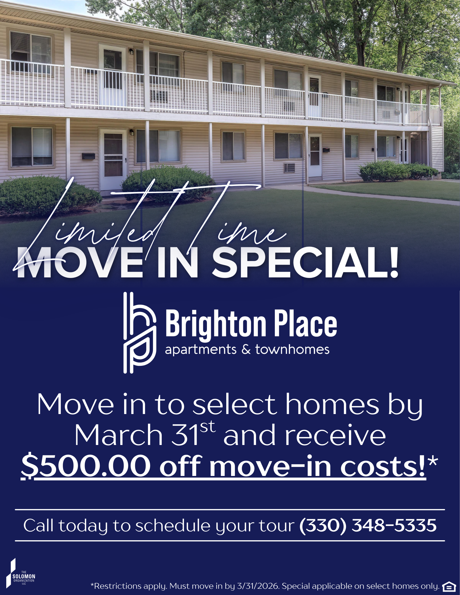 Move-in by March 31st and receive $500 off move in costs!*
